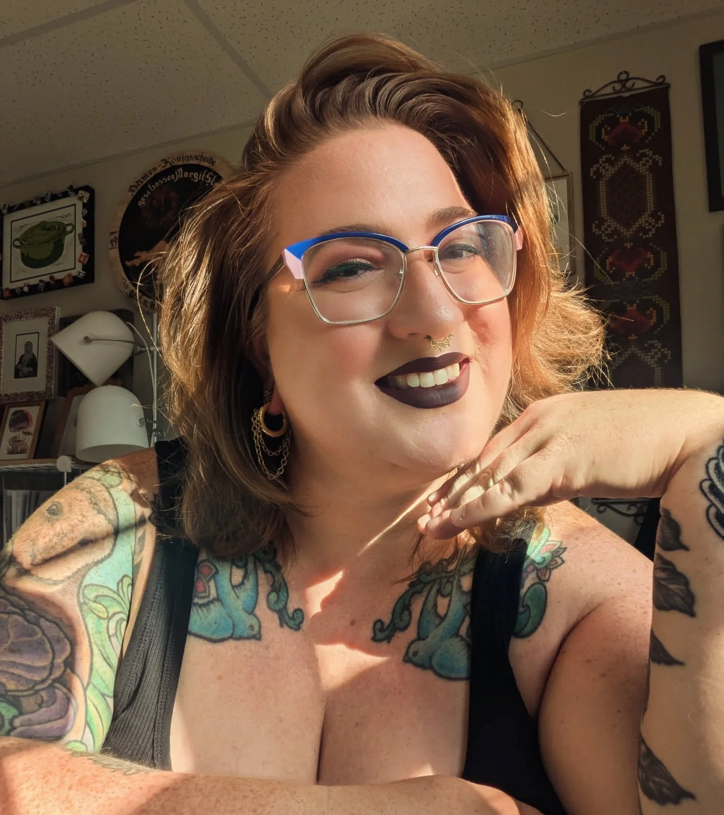 Queer artist living in Northern Michigan. They’re known for using traditional stained glass methods to create whimsical works of art. They began their glass journey while teaching high school art, and a coworker handed down all their tools and supplies. From there, Broken Glass Co. was created.